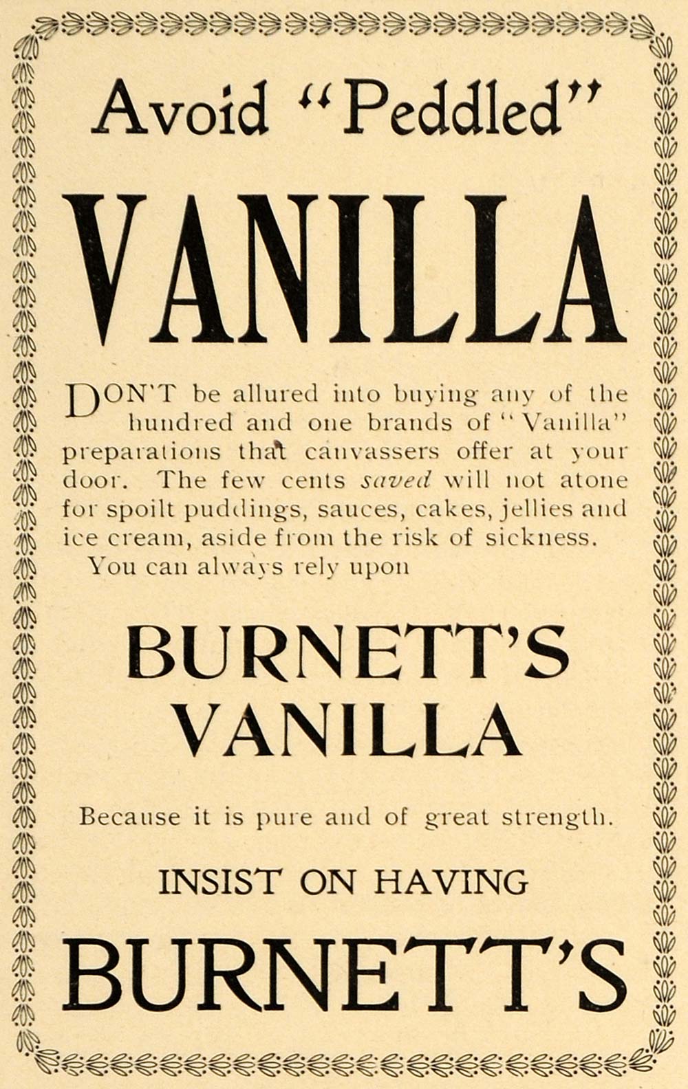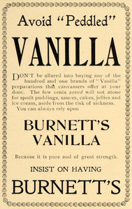 This is an original 1900 black and white print ad for Burnett's Pure Great Strength Vanilla.