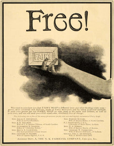 1900 Ad Free Fairy Soap N K Fairbank Hygiene Beauty - ORIGINAL ADVERTISING LHJ4