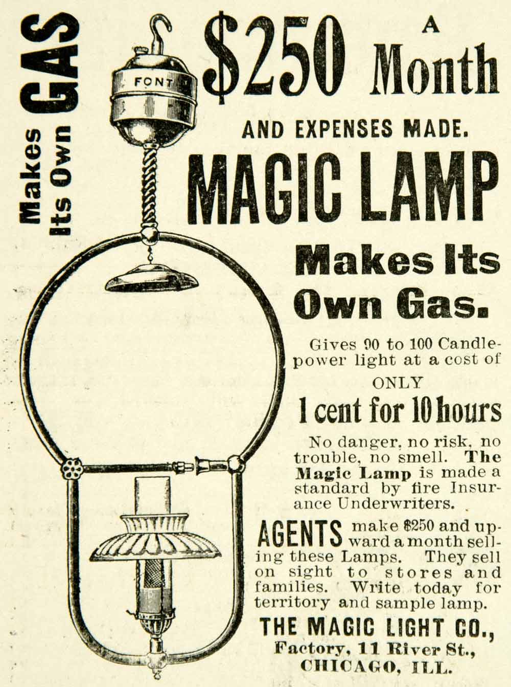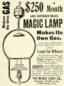 This is an original 1900 black and white print ad for the Magic Light Company of 11 River Street, Chicago, Illinois.