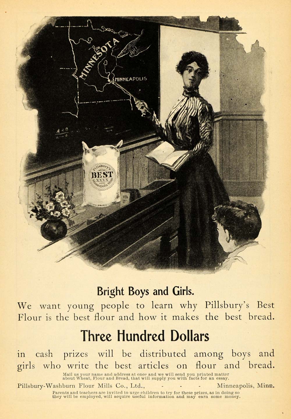 1900 Ad Pillsbury Best Flour Baker Bread Teacher Prize - ORIGINAL TOM3