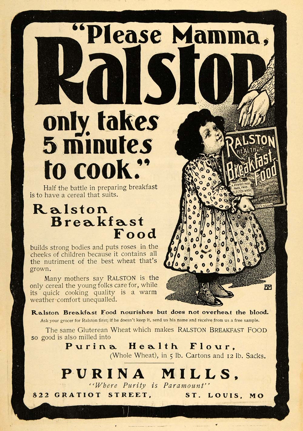 This is an original 1900 black and white print ad for the Ralston Breakfast Food from