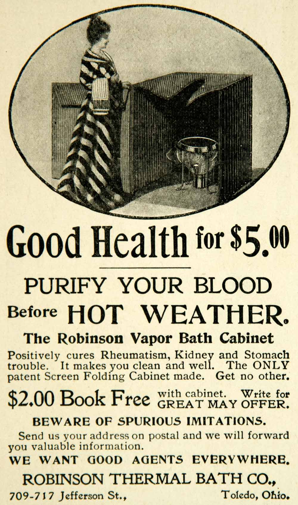 This is an original 1900 black and white print ad for the Robinson Thermal Bath Company of 709-717 Jefferson Street in Toledo, Ohio.