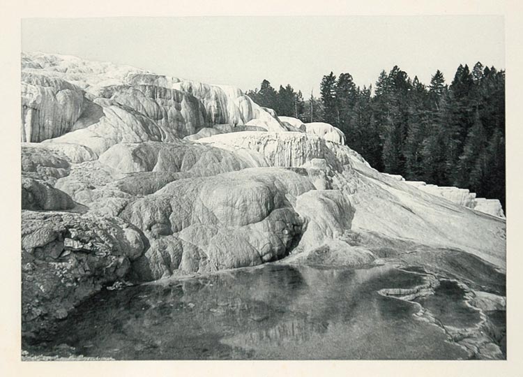 This is an original 1900 photogravure of Mammoth Hot Springs in Yellowstone National Park, Wyoming.