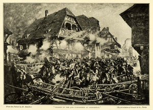 This is an original 1900 halftone print of "Charge of the 9th Cuirassiers at Morsbronn" by French Painter M. Edouard Detaille.
