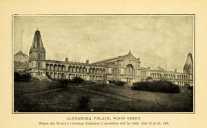 This is an original 1900 halftone print of the Alexandra Palace in Wood Green, London, where the World's Christian Endeavor Convention will be held.