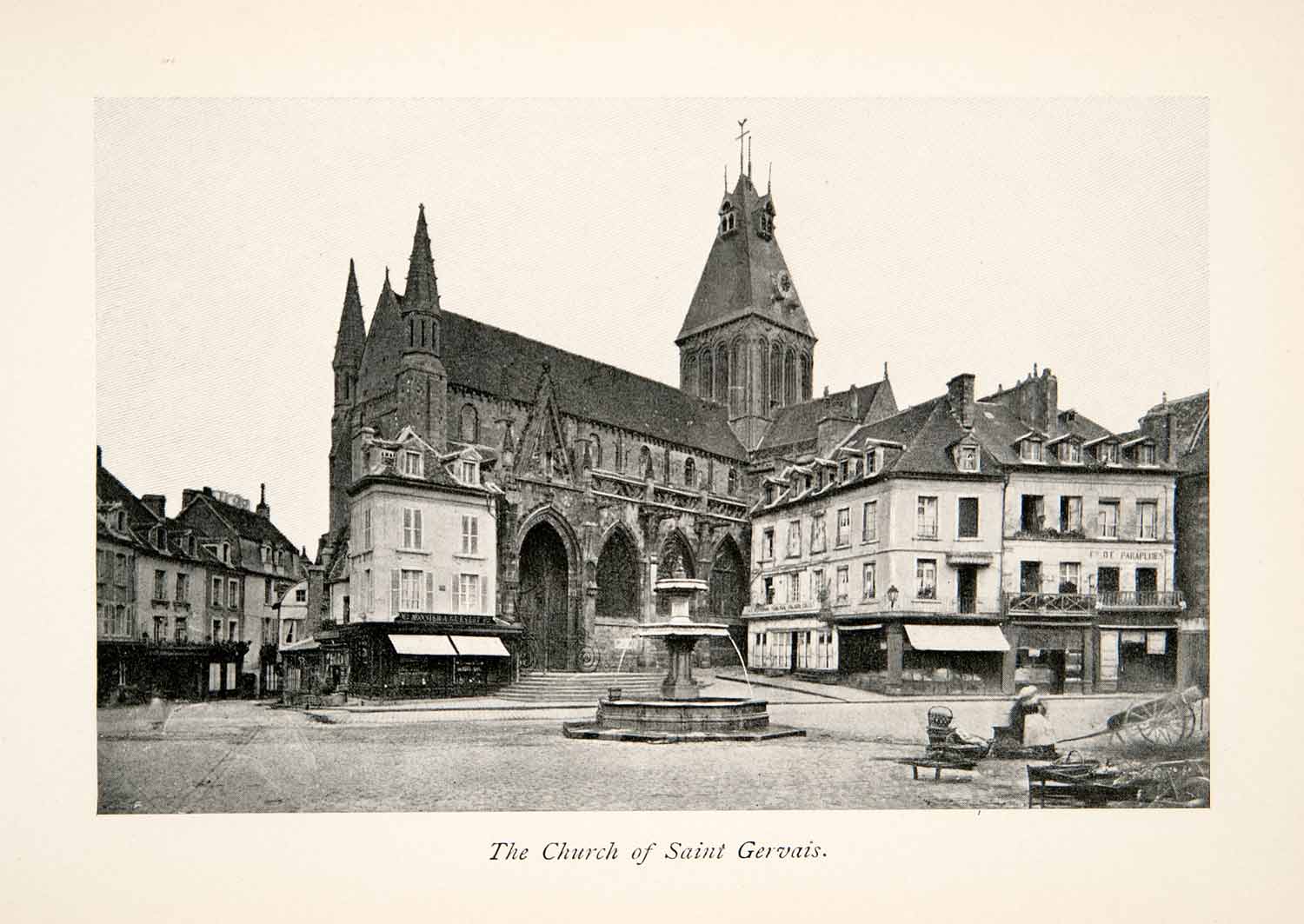 This is an original 1900 black and white halftone print of the Church of Saint Gervais in Falasie, France.