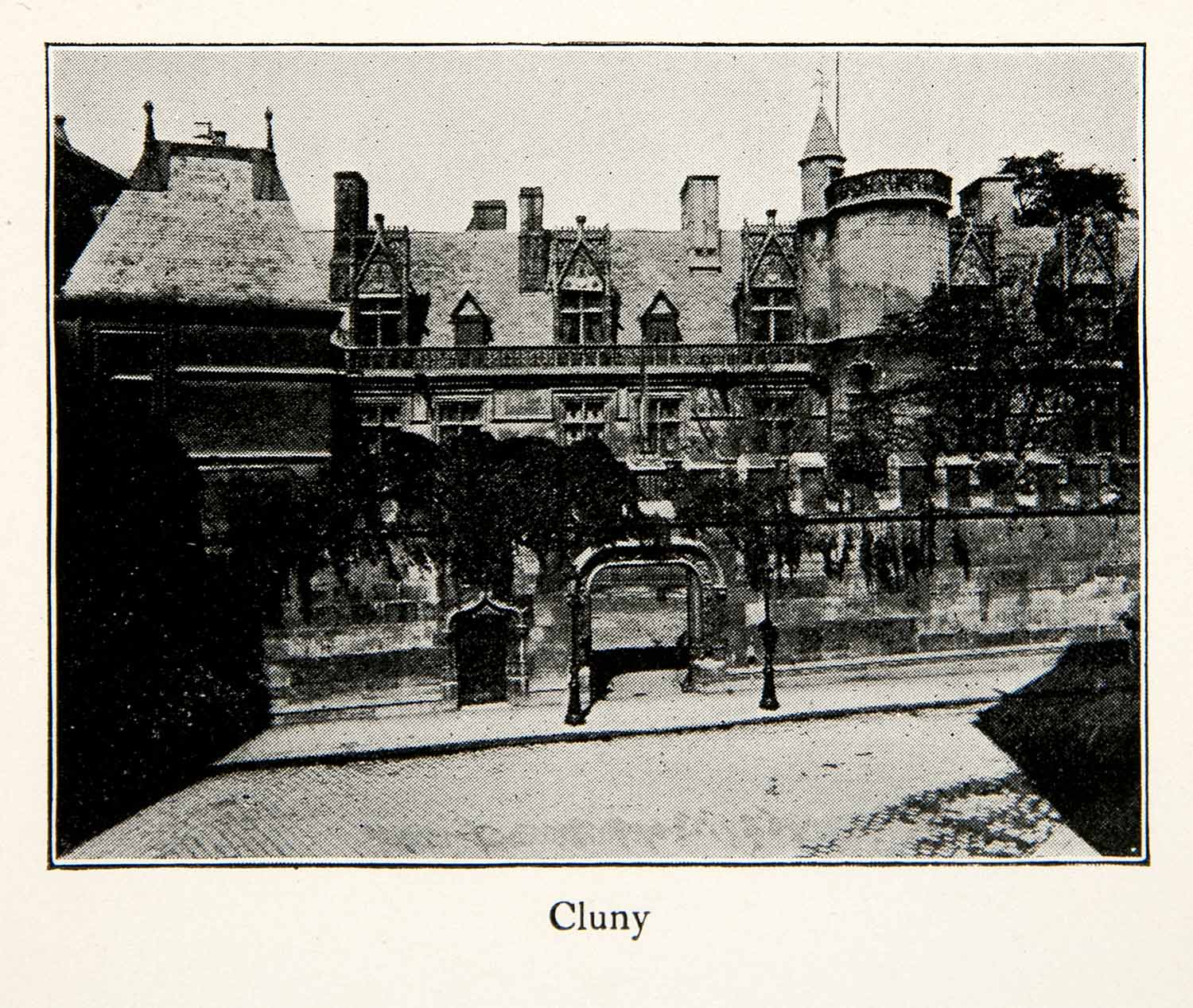 This is an original 1900 black and white halftone print of "Cluny," in Bourgogne, located in eastern France.