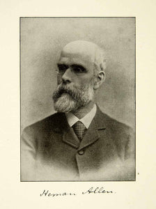 This is an original 1900 black and white halftone print of a portrait of violinist, pianist, and educator, Heman Allen. He also served as a professor of Latin and Greek at the University of Pennsylvania during the Victorian era.