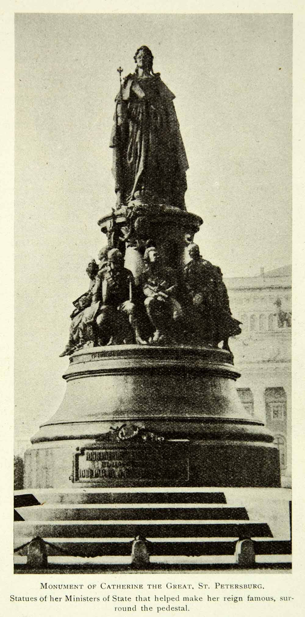 This is an original 1900 black and white halftone print of the Monument to Catherine the Great, found in Saint Petersburg, Russia.