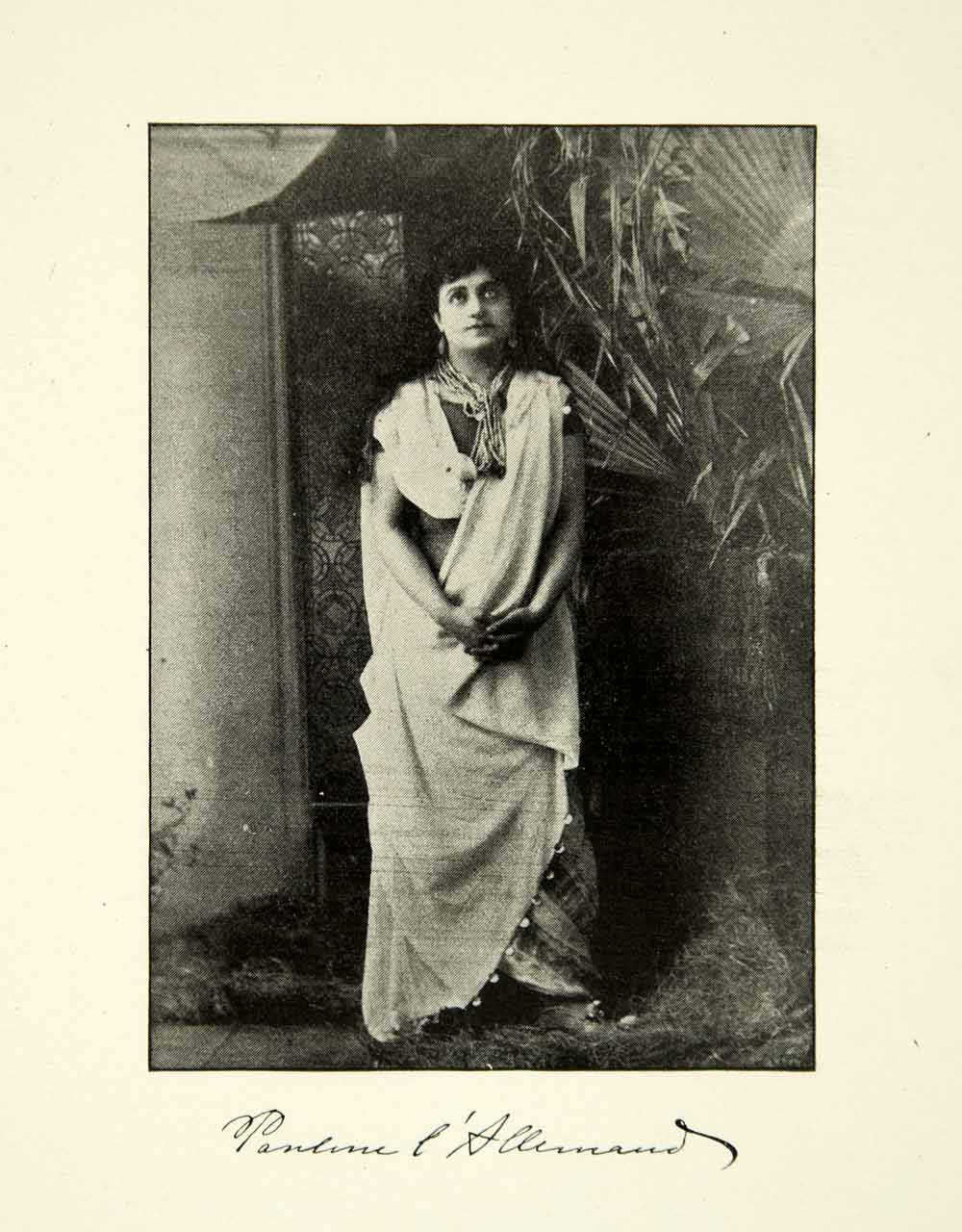 This is an original 1900 black and white halftone print of a portrait of opera singer, Pauline L'Allemand. After financial difficulties ended her career, she was declared insane and placed in the care of the Mendota State Hospital for the insane in Madison, Wisconsin (WI) in 1920.
