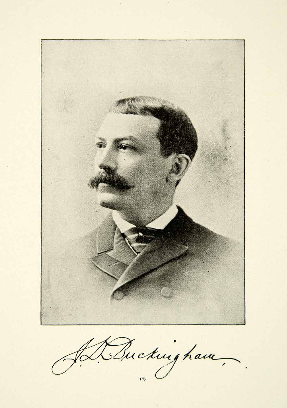 This is an original 1900 black and white halftone print of a portrait of pianist and music composer, J.D. Buckingham. A former Methodist minister, Buckingham went on to study at the New England Conservatory of Music in Boston, Massachusetts (MA).
