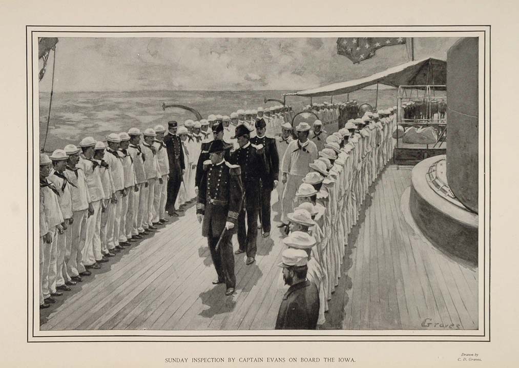 1900 Print Spanish-American War The Iowa Captain Evans Inspection Navy Sailors