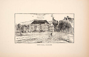 This is an original 1900 black and white relief line-block print of the City Hall in Haarlem, Holland. The City Hall was designed by Lieven de Key from 1602-1604.