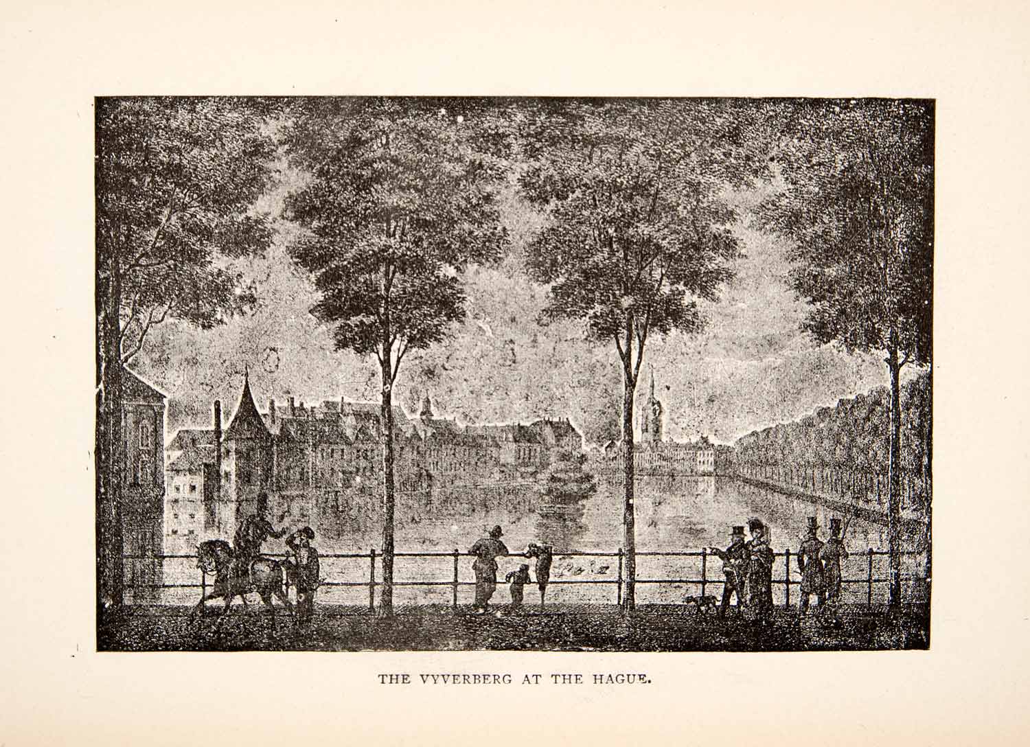 This is an original 1900 black and white halftone print of the Vyverberg at the Hague in Holland, Netherlands.