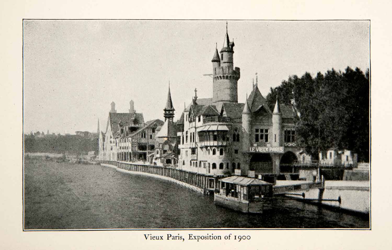 This is an original 1900 black and white halftone print of "Vieux Paris, Exposition of 1900."
