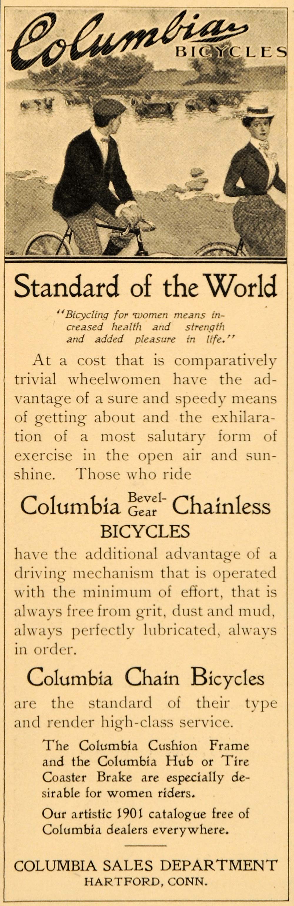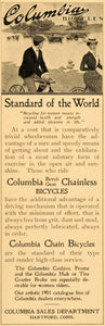 1901 Ad Columbia Bicycles Bevel Gear Chainless Hartford - ORIGINAL OD3