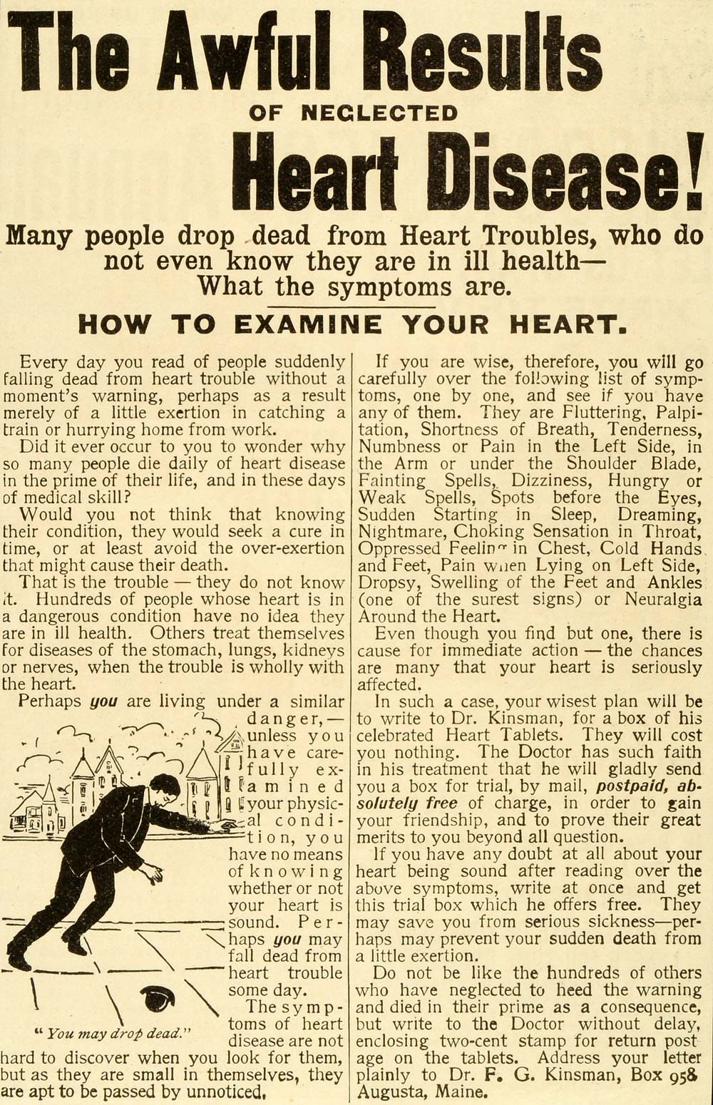 This is an original 1901 black and white print ad for Doctor F. G. Kinsman located in Augusta, Maine.