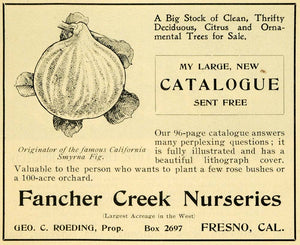 Keywords specific to this image: Vintage Advertising, George C. Roeding, Orchards, Smyrna Fig, Fruit, Ornamental Trees