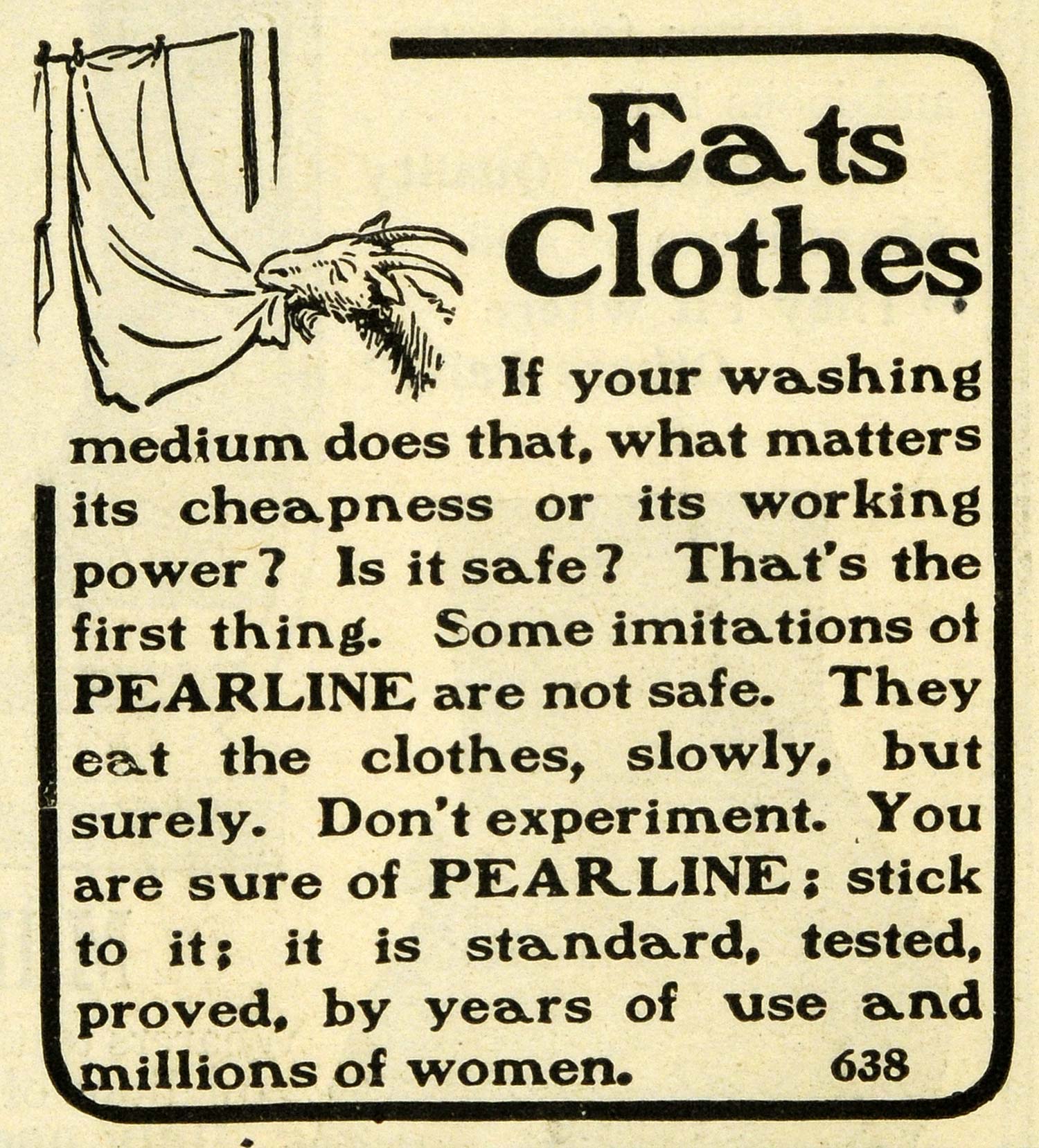 1901 Ad Goat Eating Clothes Line Pearline Laundry Soap Detergent Household TOM3