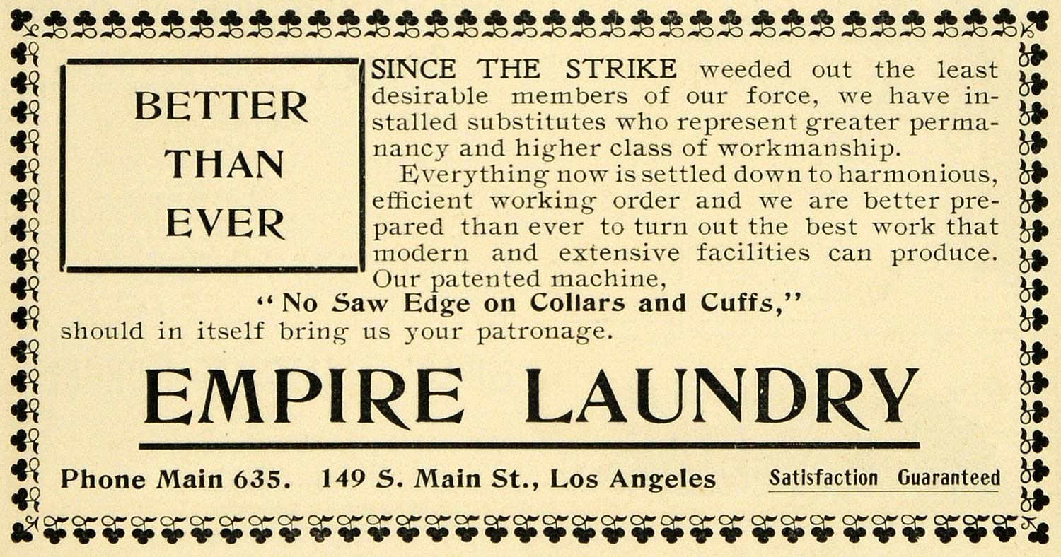 This is a small original 1901 black and white print ad for Empire Laundry, located at 149 S. main Street in Los Angeles, California.
