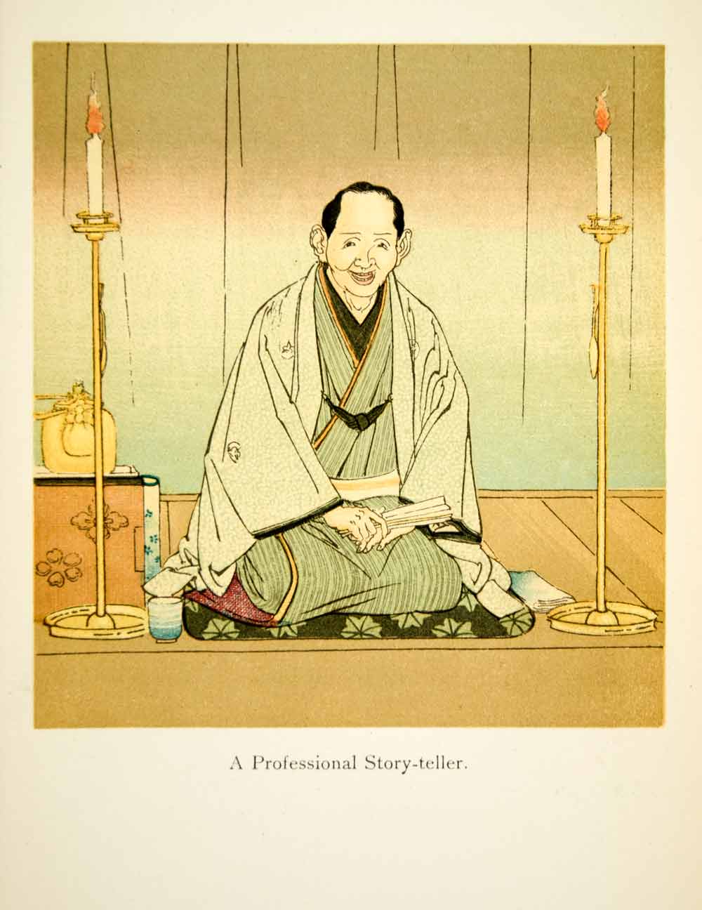This is an original 1901 color chromolithograph of "A Professional Story-teller."