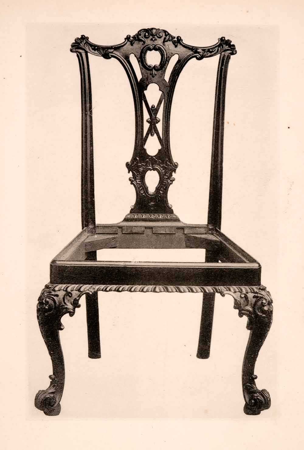 1901 Collotype Chippendale Chair Colonial America Furniture Seating XDB8