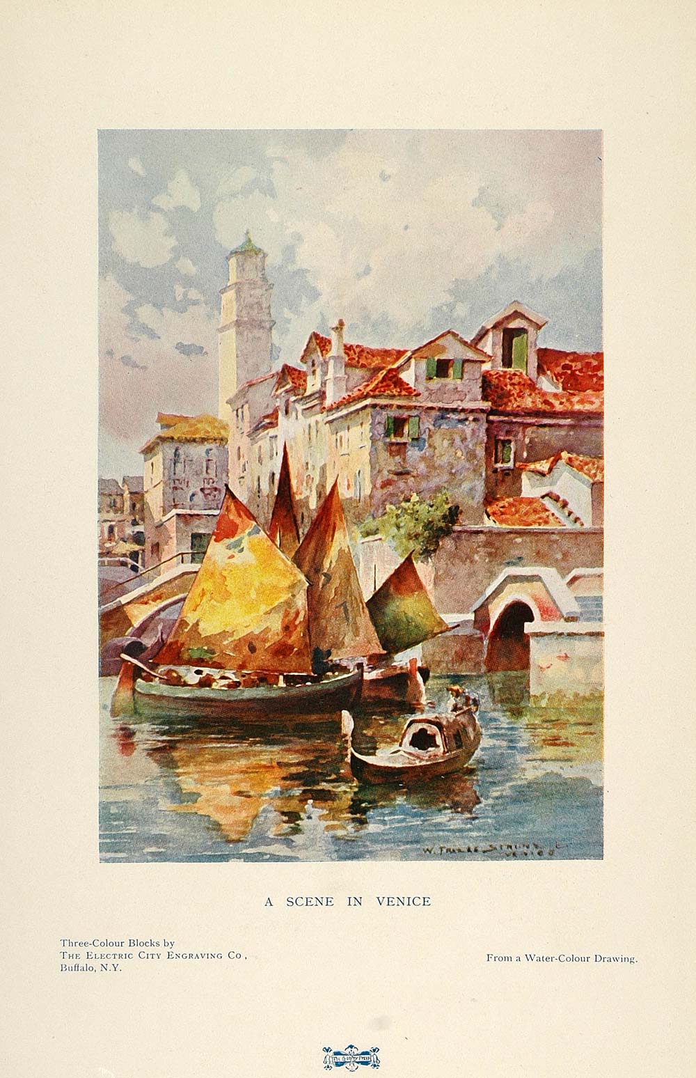 This is an original 1901 color print of Venice from a watercolor drawing. Three color blocks by The Electric City Engraving Co., Buffalo, N. Y.