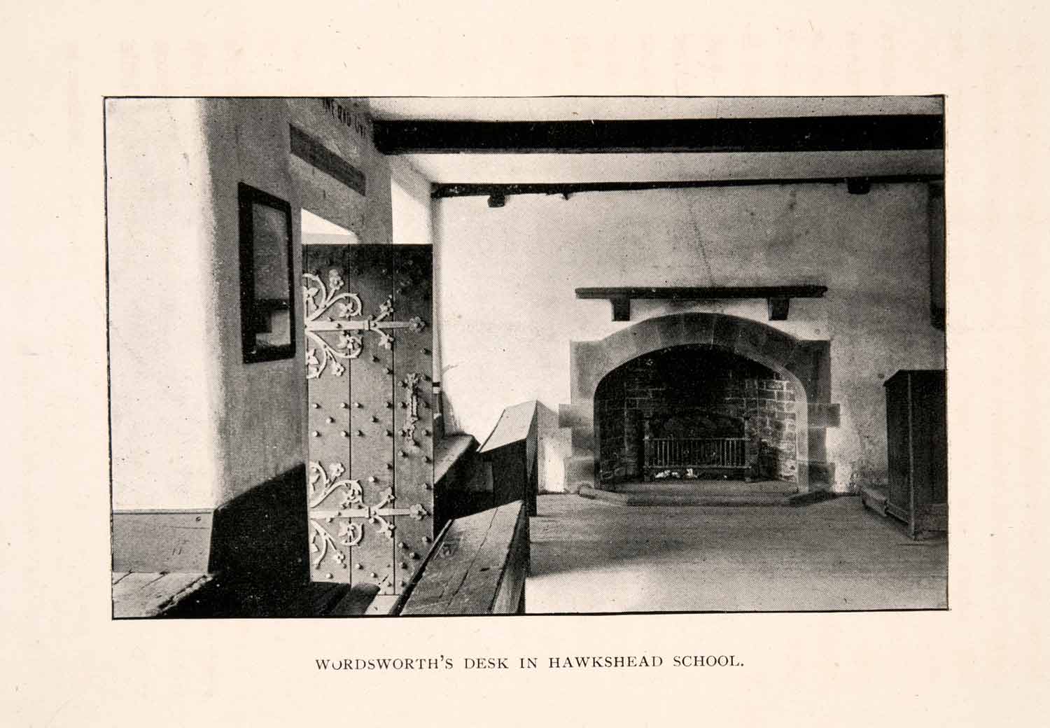 Keywords specific to this image: desk, doorway, mantle, fireplace, education