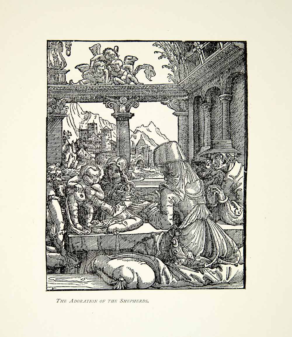 1901 Print Adoration Shepherd Religion Biblical Nativity Jesus Albrect XABA6