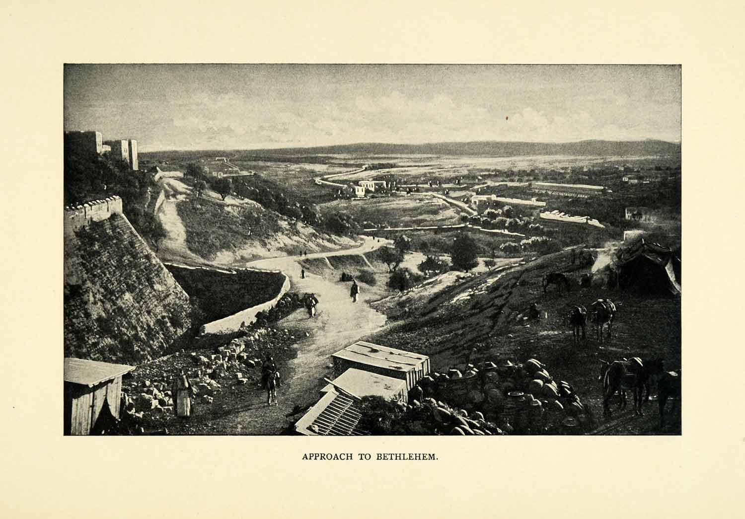 This is an original 1901 halftone print of an approach to Bethlehem in Israel.