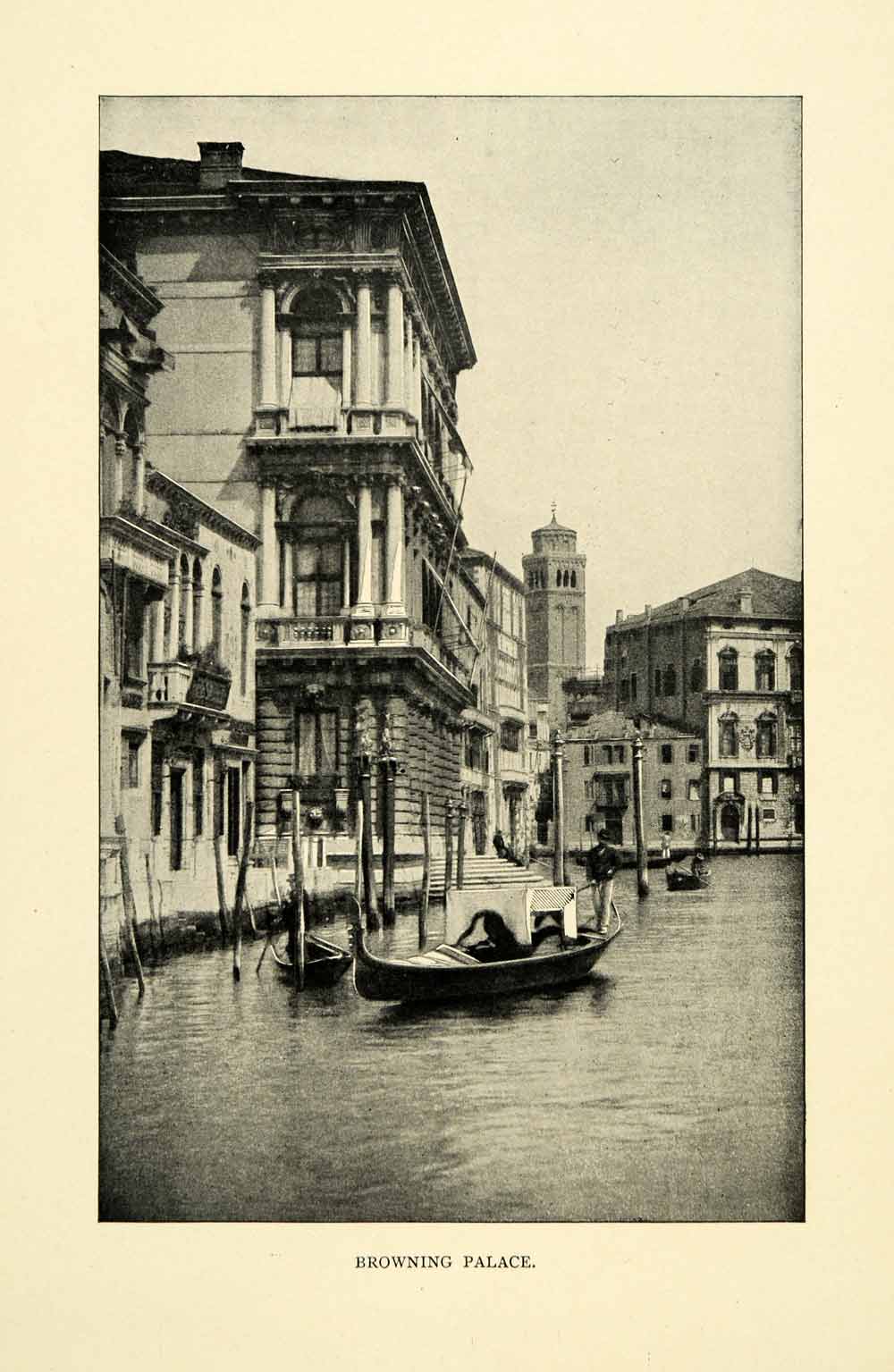 This is an original 1901 halftone print of the Browning Palace in Venice.