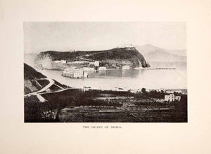 This is an original 1901 black and white halftone print of "The Island of Nisida," in Italy.