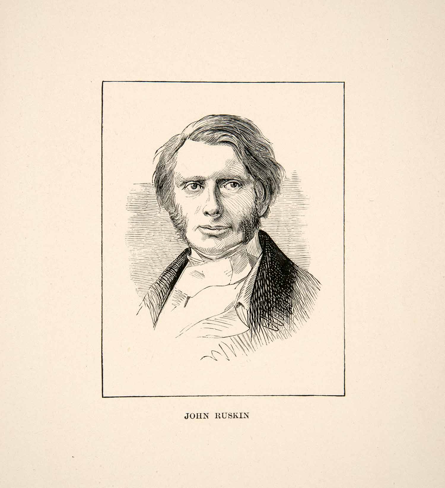 This is an original 1901 black and white relief line-block print of John Ruskin (February 8, 1819-January 20, 1900), English Painter and Philosopher of the Victorian Age.