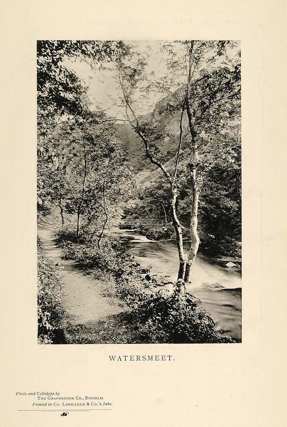 This is an original 1901 halftone print of Watersmeet near Lynmouth, North Devon, England. Photo and collotype by The Graphotone Co., printed in Ch. Lorilleux & Co.'s inks.