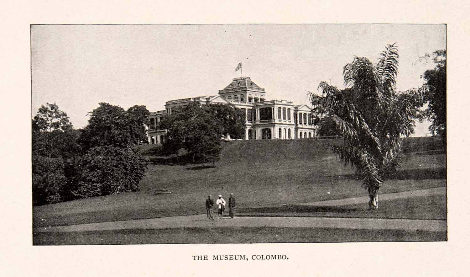This is an original 1901 black and white halftone print of the Sri Lanka National Museum in Colombo, Sri Lanka established by Sir William Henry Gregory in 1877 and today houses art and the crown jewels from the previous rulers of the Kingdom of Kandy.