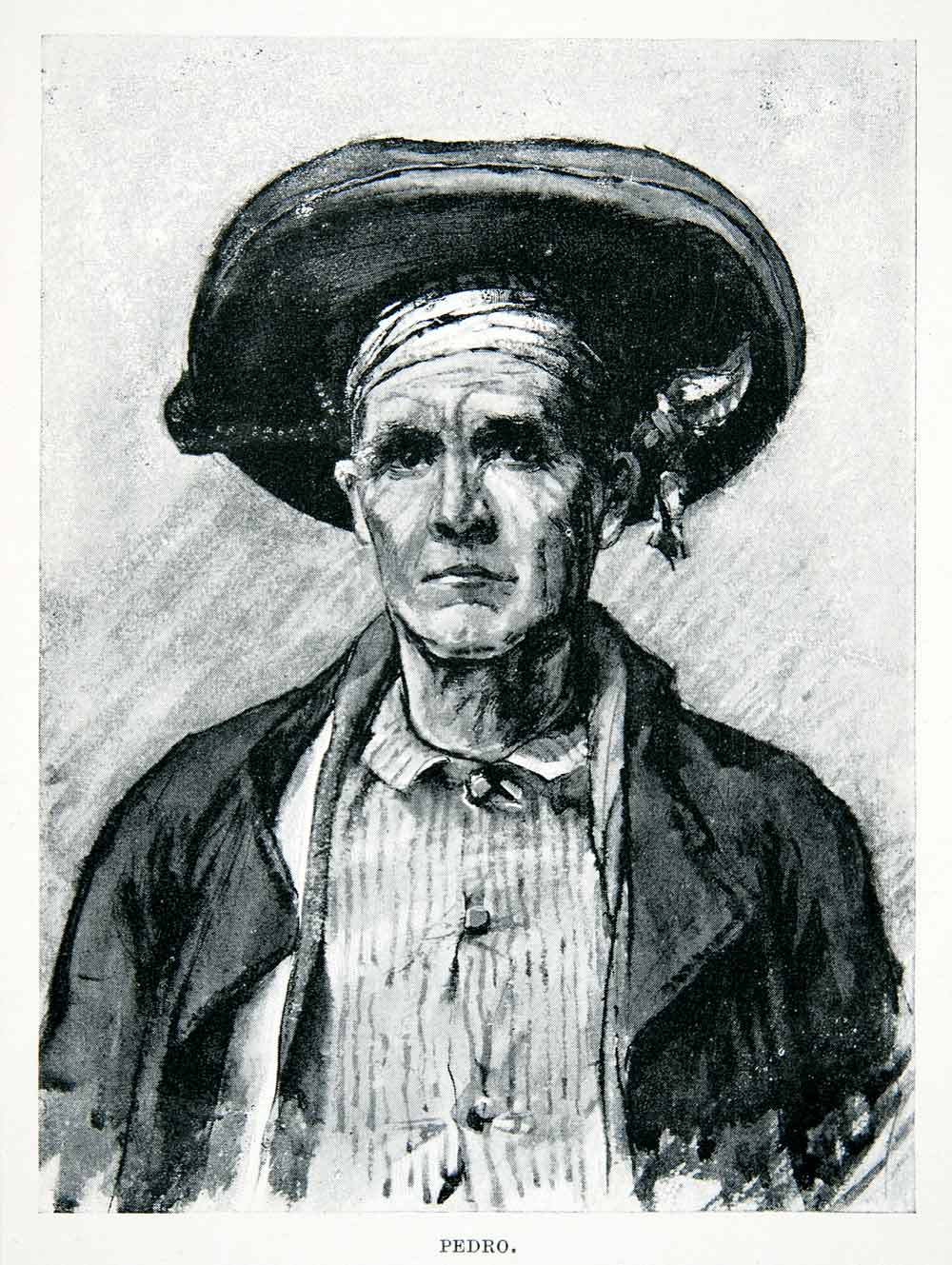 This is an original 1901 black and white halftone print of a portrait of a man named Pedro from Catalonia, Spain.