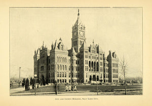 This is an original 1901 halftone print of the City and County Building in Salt Lake City, Utah.