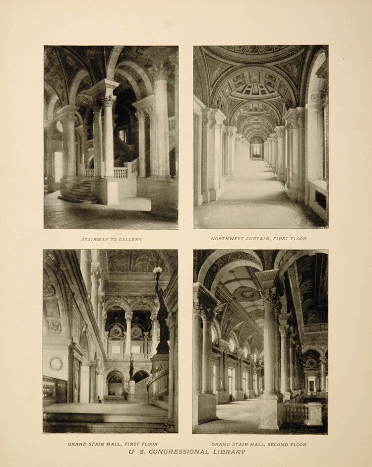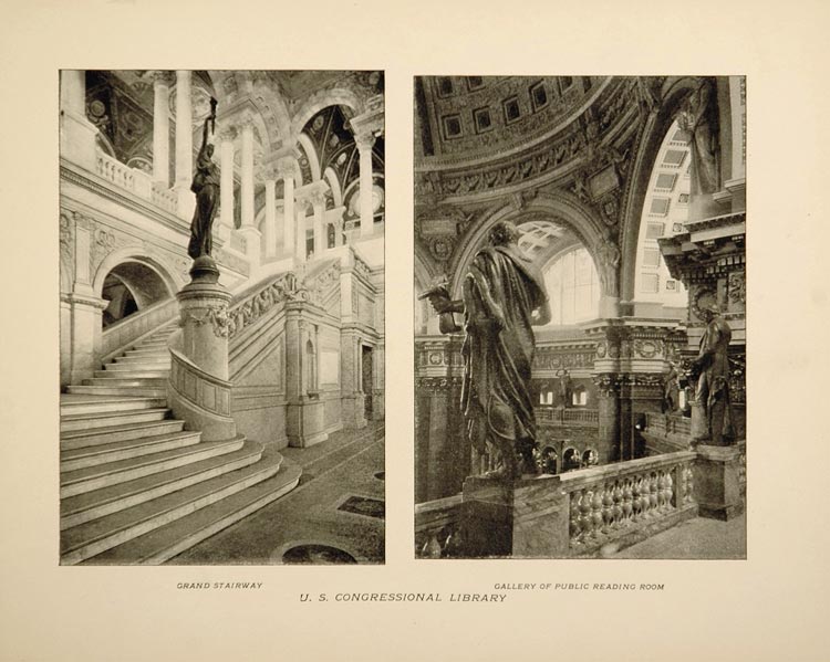 This is a double-sided print. On the reverse: Grand Stairway, Gallery of Public Reading Room.