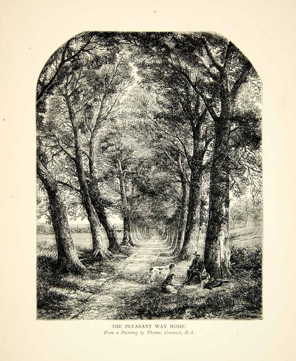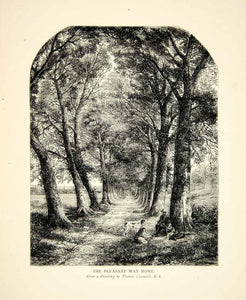 This is an original circa 1901 black and white wood engraving of a painting by Thomas Creswick (1811-1869) entitled "The Pleasant Way Home".