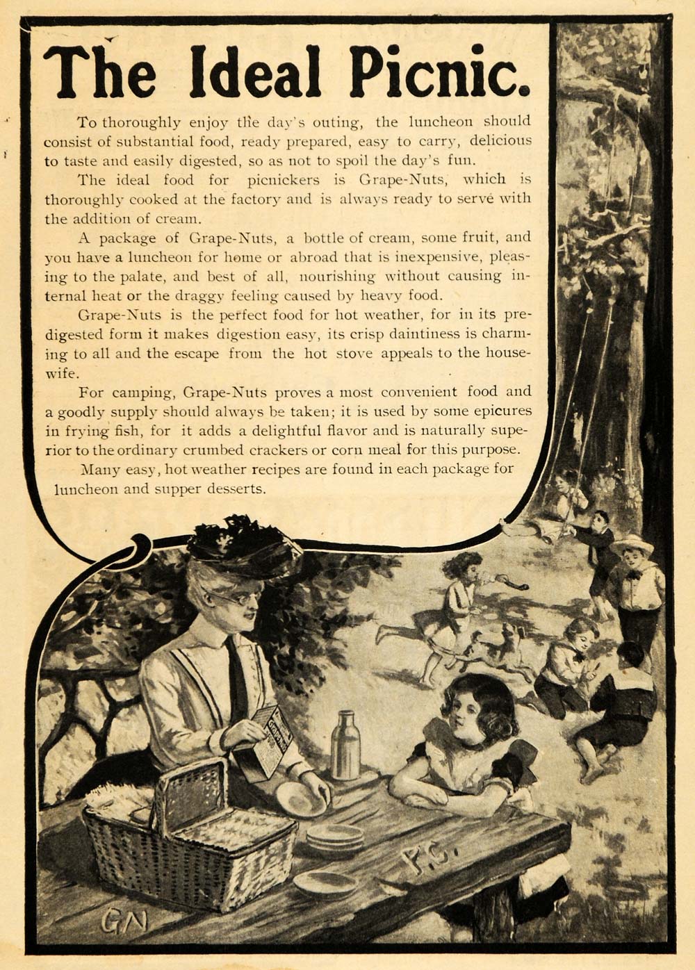 1902 Ad Postum Cereal Grape Nuts Breakfast Health Food Picnic Basket ARG1