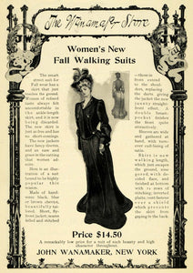 This is an original 1902 black and white print ad for the Women's New Fall Walking Suits, from John Wanamaker Department Store located in New York.