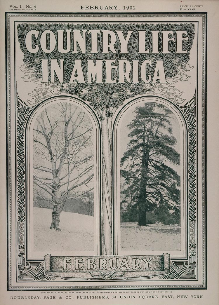 Please note that this is a cover only! This is the original cover of County Life in America magazine, February 1902, Vol. 1, No. 4. Doubleday, Page & Co., Publishers, 34 Union Square East, New York.