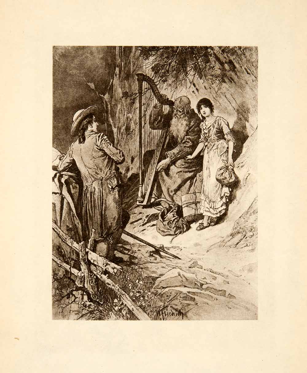 1902 Photogravure Kirkbach Harper Daughter Walking Stroll Music Instrument XGDC9