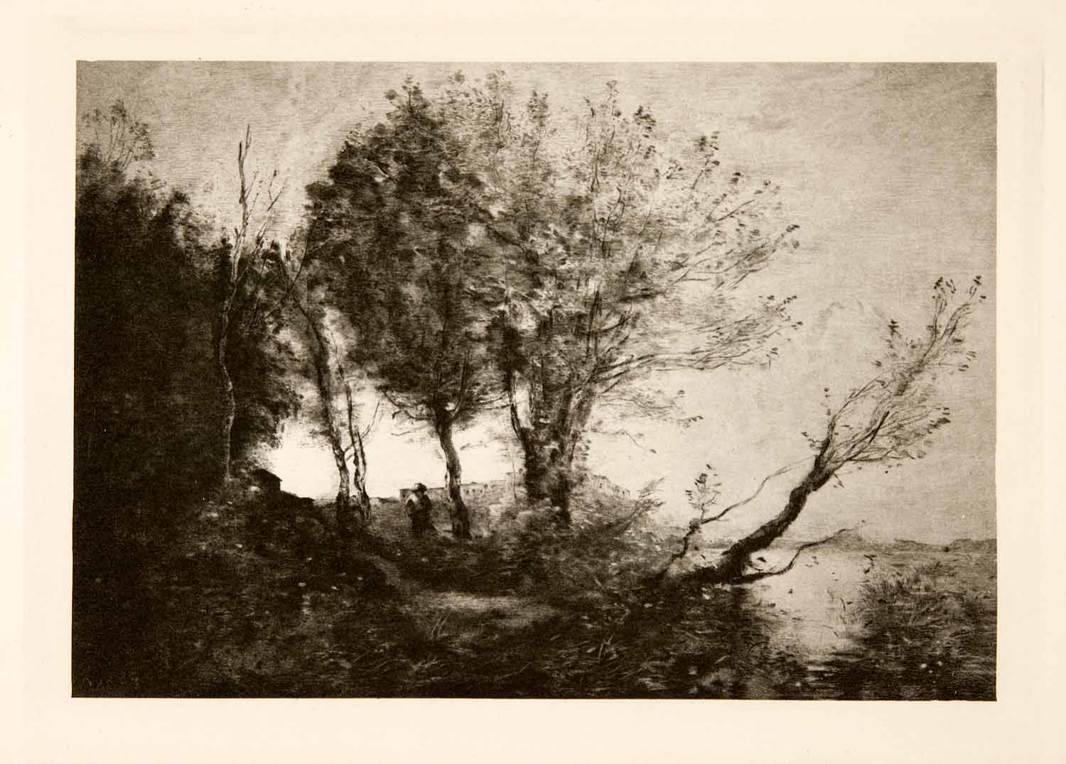 This is an original 1902 black and white photogravure of a hiker in the Italian landscape.