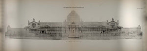 This is an original, circa 1902, print of an architectural drawing of the 1887 Grand Prix de Rome d'Architecture. We apologize that the digital capture of this item does not meet our normal high standards due to its oversize format. This print is actually uniform in appearance with no variation in surface tone. (Due to its large size this item will be shipped folded along the original crease.)