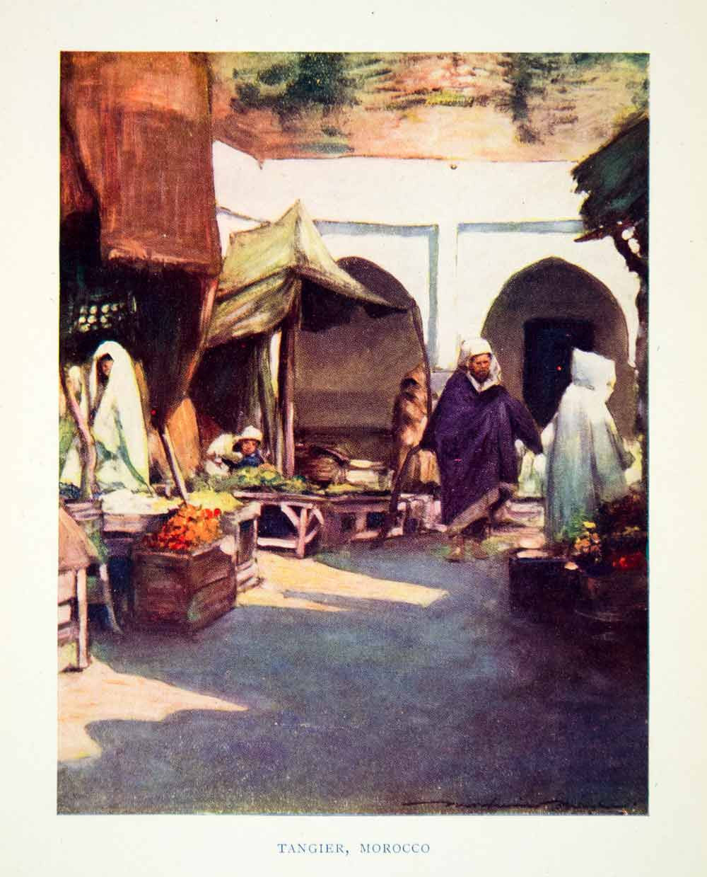 1902 Print Cityscape Street Scene Tangier Morocco Market Goods Mortimer XGYC6