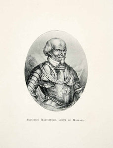 This is an original 1902 black and white halftone print of Italian noble, Francesco Martinengo, the Count of Malpaga in the Lombardy region.