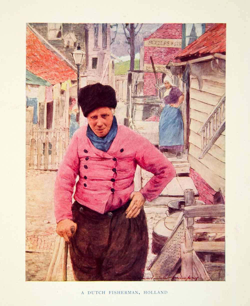 1902 Print Dutch Fisherman Holland Portrait Cityscape Village Mortimer XGYC6