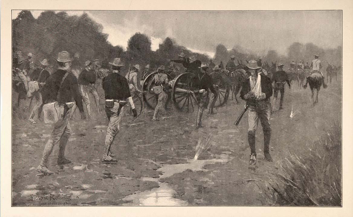 1902 Print Frederic Remington Art Army Marching Soldiers Artillery Cannon Gun