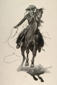 1902 Print Frederic Remington Art Cowboy Lasso Cowpuncher American Old West